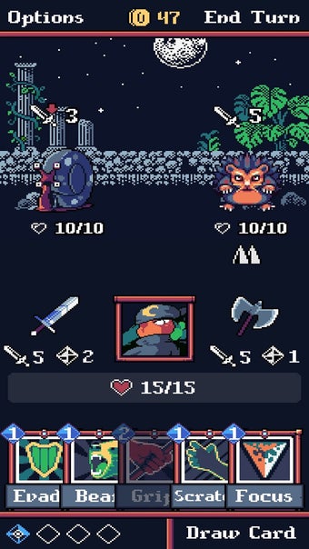 Samla över 50 olika vapen för att utrusta dina krigare, samt mer än 250 kort för olika handlingar, inklusive parera, bonusbesvärjelser och andra att använda beroende på situationen. Dock finns det inte mycket innehåll att erbjuda här. Förhoppningsvis kommer mer att läggas till i framtida uppdateringar.